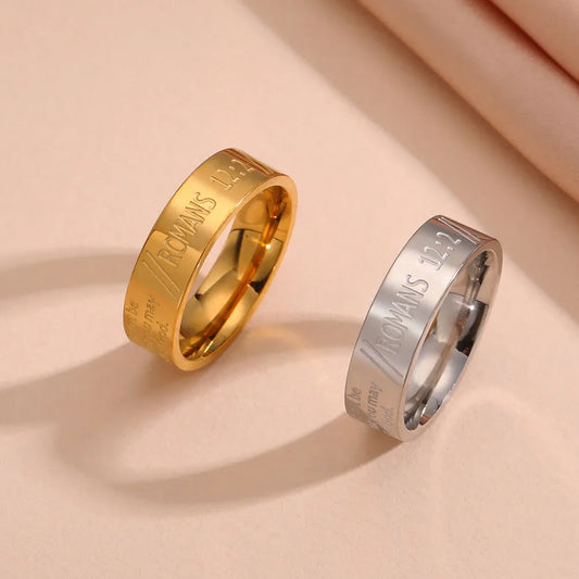 Bible Verse ROMANS 12:2 Ring Stainless Steel Gold Color Joshua Religion Christian