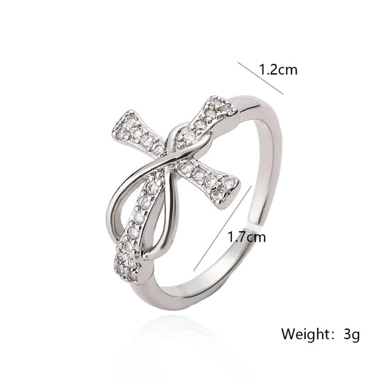 Zircon Cross Rings For Women Gold Color Stainless Steel Crystal Cross Adjustable Ring Religious Wedding Christmas Jewelry Gift