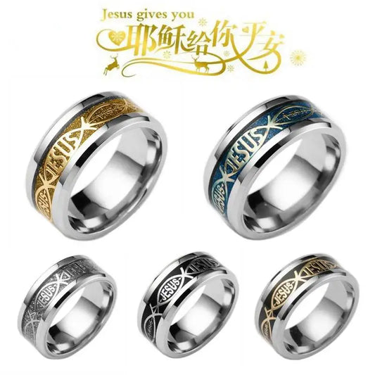 Stainless Men's JESUS Titanium Steel Corrosion Ring, Non Fading