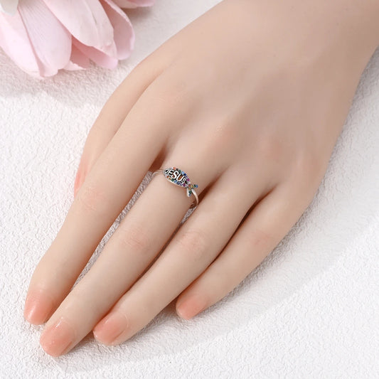 Adjustable Silver Plated Cross Jesus Ring For Women Christian Faith Prayer Rings Jewelry Christmas Gifts