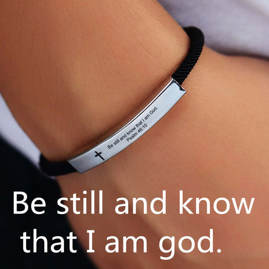 Cross Jesus Scripture Bracelet Christian Bible Verse Engraved Letters Stainless Steel Bracelets Braided Rope Wristband
