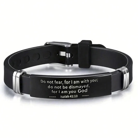 Bible Verse Bracelet Black Stainless Steel Silicone Christian Bracelets For Men Women Jewelry